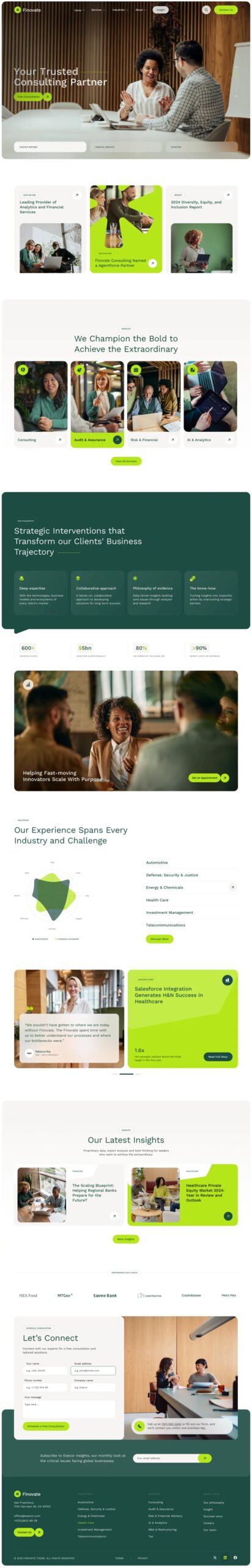 Built and suitable for financial advisors, wealth managers, investment firms, and business consultants. Whether you provide financial planning, tax advisory, corporate finance services, or business strategy consulting, this theme offers a professional and sleek design to elevate your online presence.